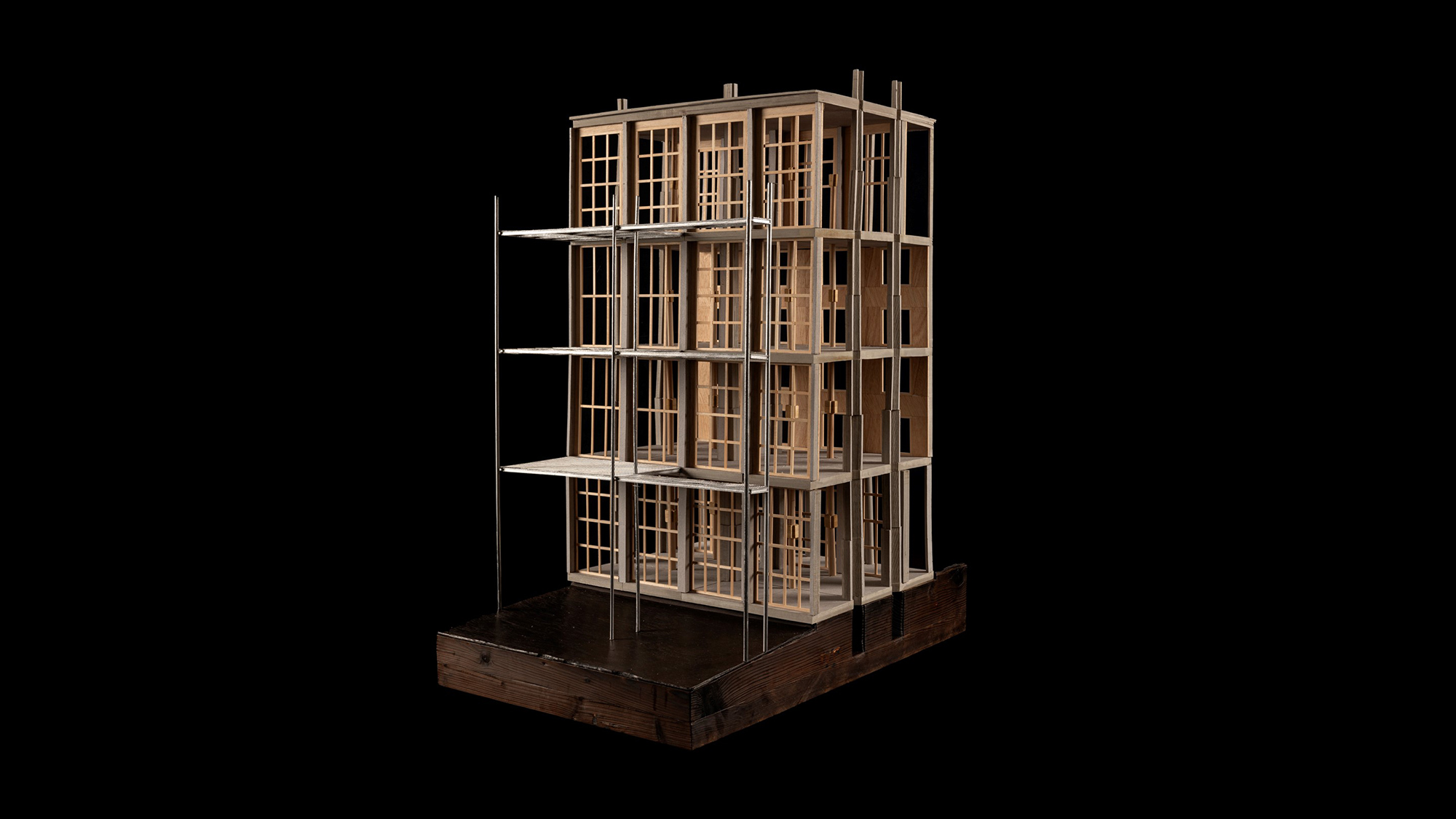 Um den Energieverbrauch im Gebäudesektor zu reduzieren und die aktuelle Wohnungsknappheit zu mildern, wird es immer wichtiger, sich mit den Sanierungen, insbesondere von Fassaden aus den 1960er und 1970er Jahren, zu beschäftigen. Das lineare Anbauen neuer Raumschichten über ganze Fassadenfluchten hinweg schafft neue Raumverbindungen und zeitgemässe Wohntypologien. Neben einer substanziellen energetischen Ertüchtigung entstehen mehr Wohneinheiten mit einer höheren Belegung und weniger Flächenverbrauch pro Kopf. Das klassische Baugerüst, das bei Fassadensanierungen als temporärer Arbeitsraum zum Einsatzkommt, wird zum gestalterischen Ausgangspunkt der eigentlichen Intervention. Der leichte Stahlskelettbau wird mit Windverbänden ausgekreuzt. Der gerüstartige Ausdruck strahlt eine gewisse Leichtigkeit aus und öffnet die Wohnungen zum Landschaftsraum.