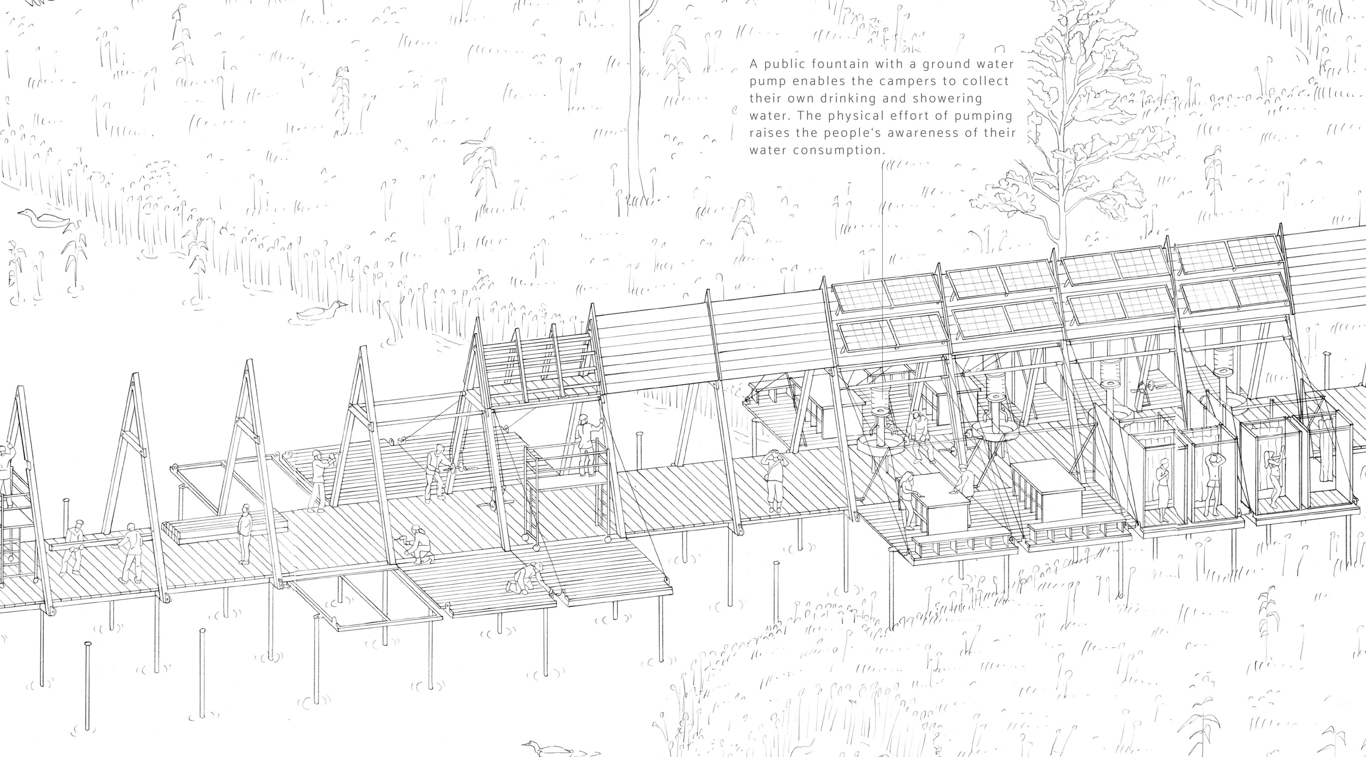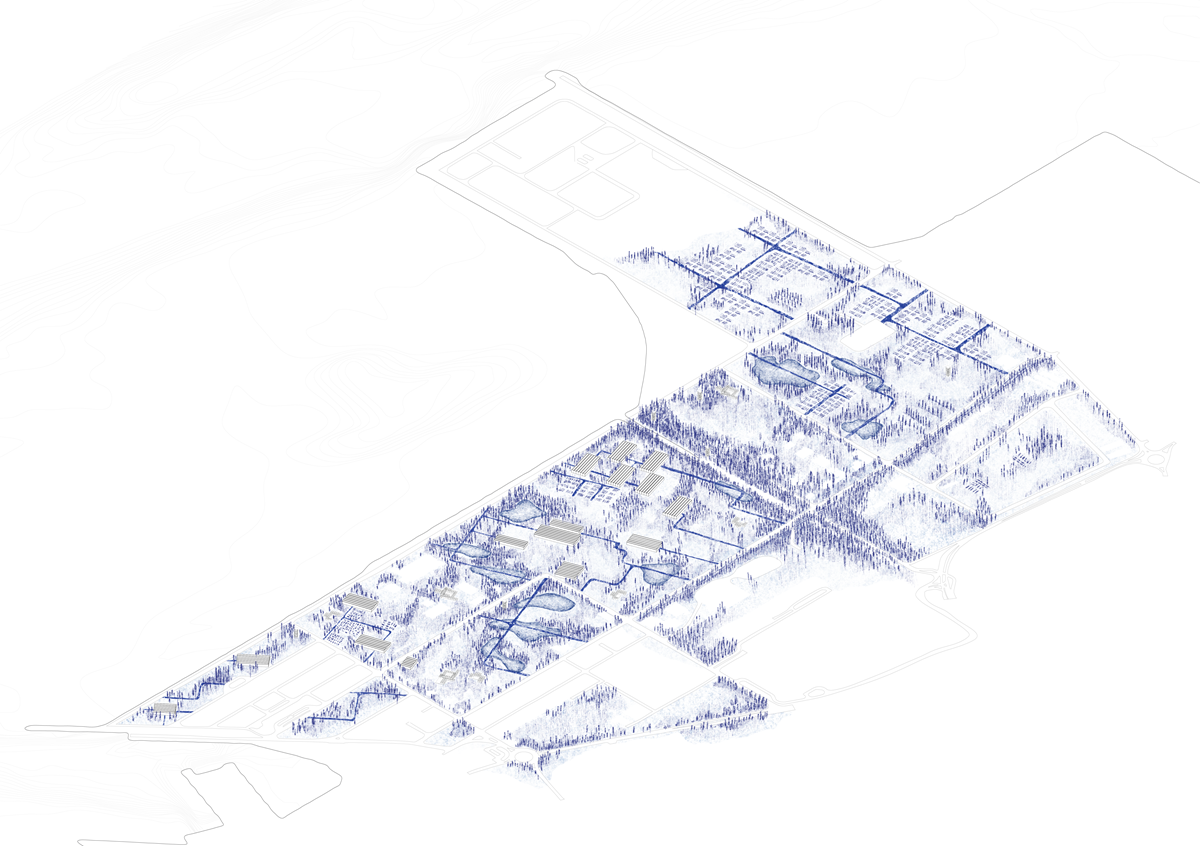 The project begins with the observation of what lies beneath the surface, focusing on what we do not immediately see, but that shapes a its possibilities: the invisible. By understanding its history, I saw how the site became what it is today, abandoned and polluted. I asked myself how to act on this invisible layer. I found an answer in compost and biochar: compost from organic waste, biochar from biomass. Together, they clean the soil, support microbial life and block heavy metals. Infrastructures are reconfigured to support the environment. People are already there, inhabiting a space that is still evolving. This is not a project that waits to be complete to be used; it is a space that invites us to live inside transformation, and to let the invisible become generative.