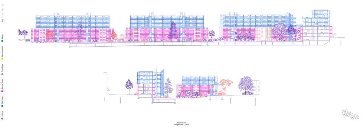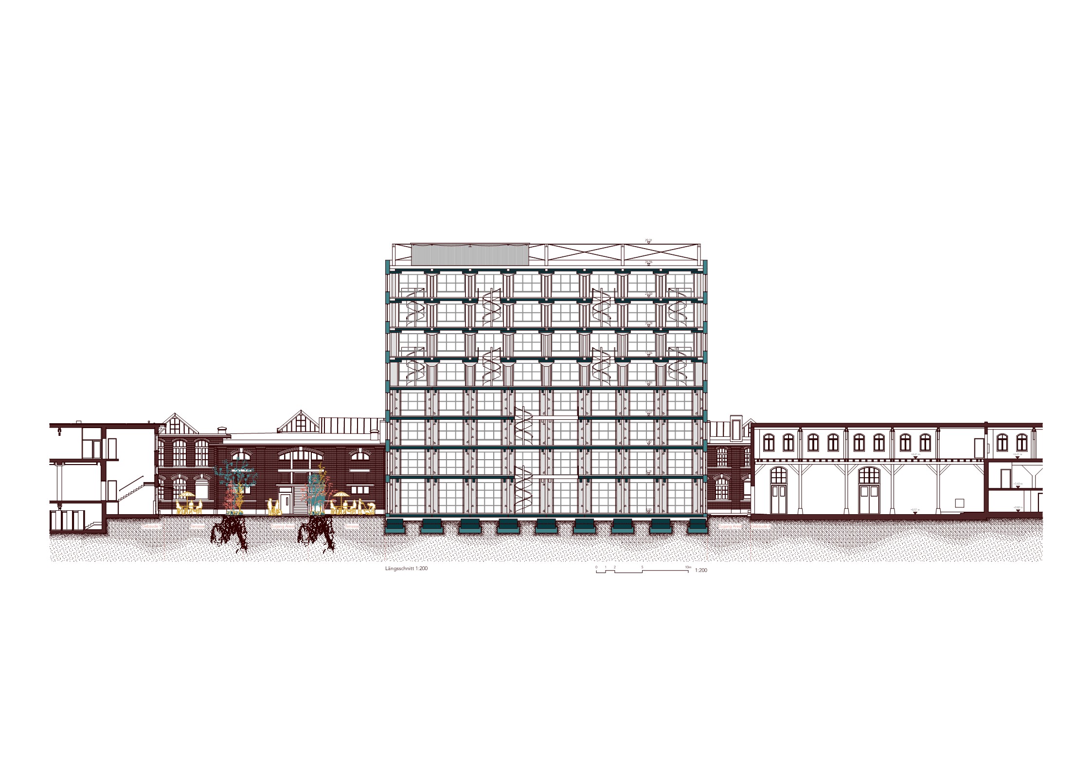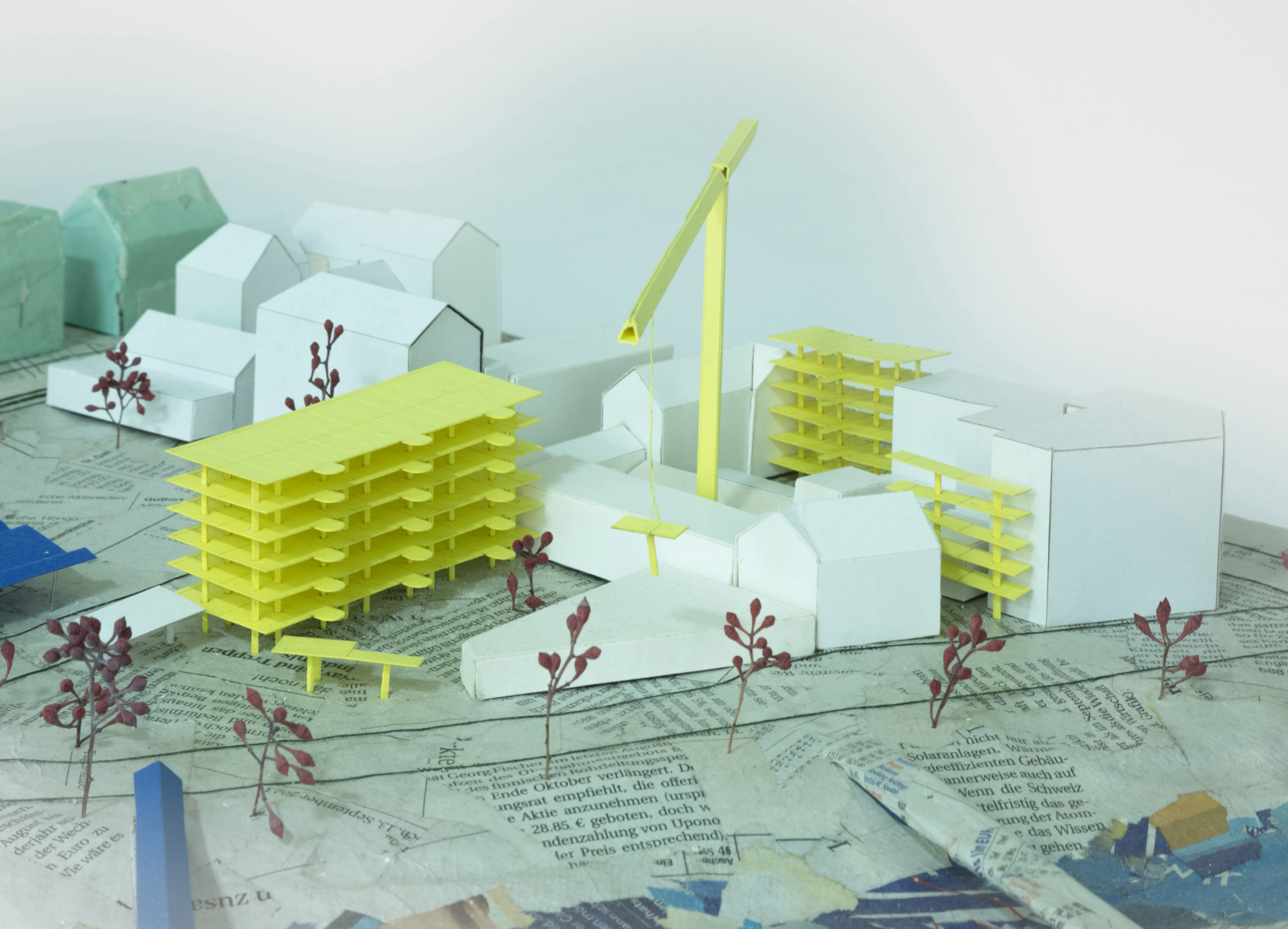 Der Gebäudesektor ist ein intensiver Verbraucher von Ressourcen und erzeugt weltweit 40% der Emissionen, 70% davon während der Herstellung hochwertiger und langlebiger Materialien. Das macht den Gebäudebestand zum wertvollsten Materiallager des Landes. Urban Mining nutzt diesen Ansatz, indem es Ressourcen im Bestand erfasst und wieder nutzbar macht. In der gegenwärtigen Baupraxis werden jährlich zwischen 3.000 und 4.000 Abbruchbewilligungen erteilt, wobei ein signifikanter Anteil dieser Abbrüche ein beträchtliches Potenzial für die Gewinnung von Bauteilen und die Wiederverwendung aufweist. Es galt, ein Projekt mit möglichst hohem Anteil an wiederverwendeten Bauteilen in der Tragstruktur zu entwerfen. Der Entwurf berücksichtigt das Prinzip des «Design for Disassembly». Für die Treibhausgasbilanz bei der Erstellung des Tragwerks wird gegenüber einem konventionellen Neubauwert eine Einsparung von gut 75% des CO2 ermittelt. Das Tragwerk besteht aus einem Skelettbau, der aus wiederverwendeten Stahlbetonelementen errichtet wird. In diesem Neubau werden ca. 80% der tragenden Elemente als Bauteile aus rückgebauten Gebäuden wiederverwendet.