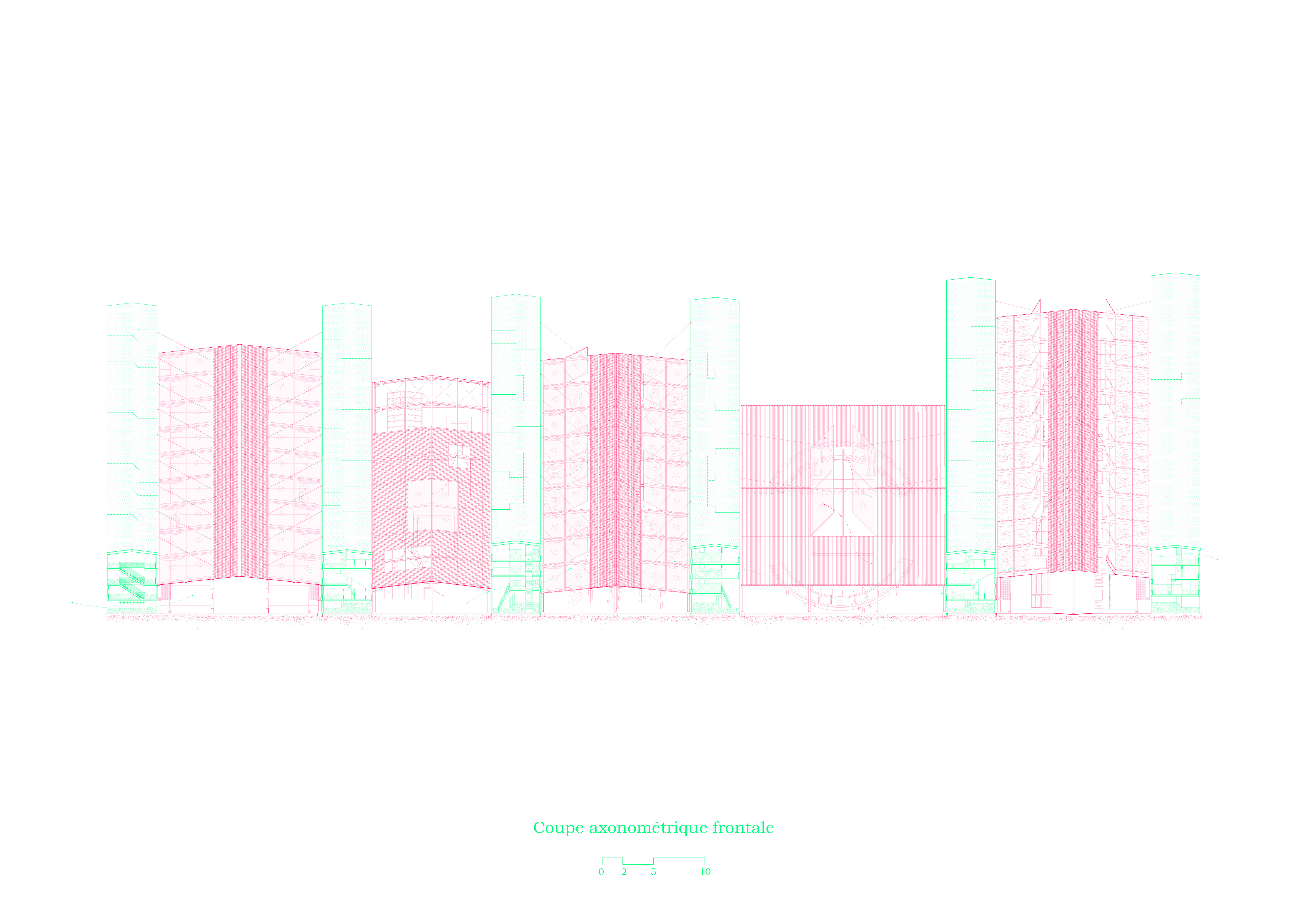 The diploma project involves the bold transformation of commercial warehouses into housing on the outskirts of Annecy, a town facing strong demographic growth. This ambitious project imagines a new way of living, both mixed and collective, by exploiting the gaps between the existing structures to insert shared, convivial spaces. It is built around “houses” capable of accommodating a diversity of lifestyles, while fostering social ties thanks to generous, well-designed communal spaces. In this way, the interstices become places for sharing, meeting and living together. The presentation of the project, as well as the quality of the drawings and models, testifies to great mastery. This is a refreshing proposal for housing that takes full advantage of the potential of commercial wasteland. The precise and rigorous approach is based on a clear urban strategy, ranging from large-scale to intimate domestic use.