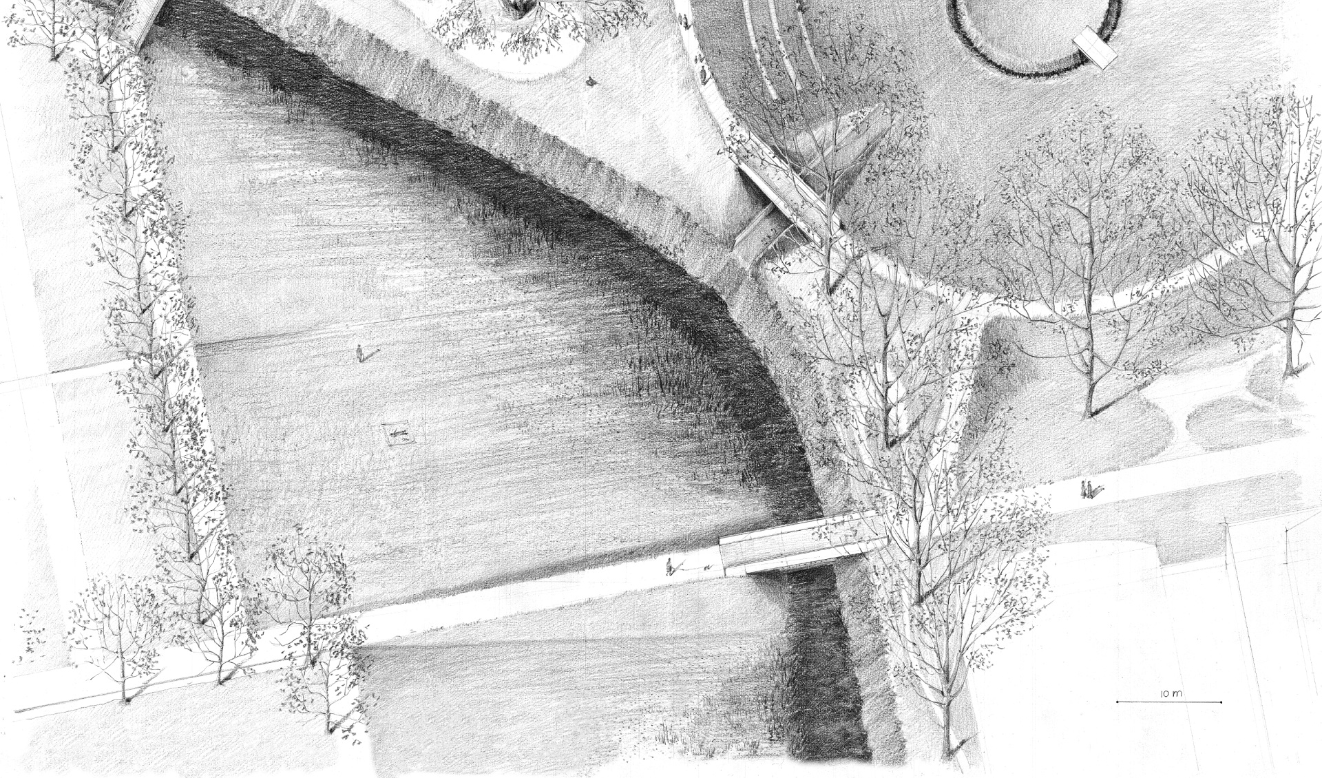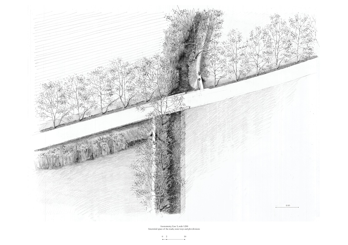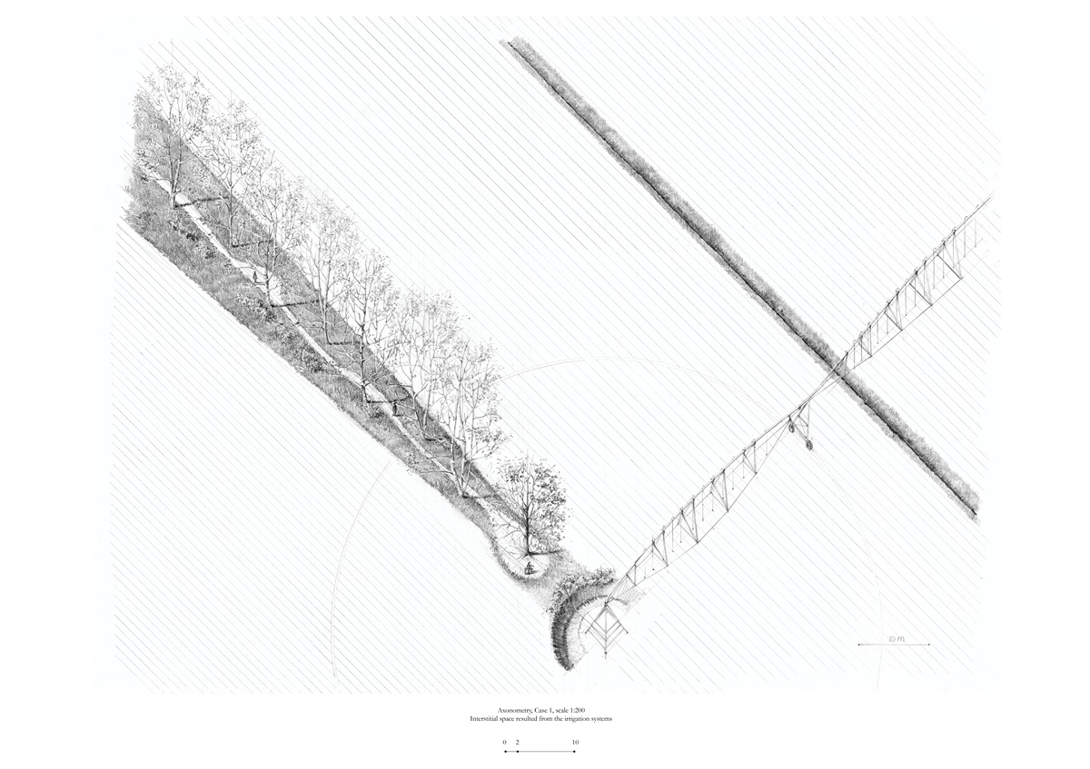 The protection of the largest aquifer on the Iberian Peninsula, located on the Setubal Peninsula, is the subject of a landscape project that not only transforms the rural landscape of the area in question, but also the approach to managing agricultural activities in peri-urban areas. This landscape reorganisation project aims to reduce wind action within the area under consideration by modifying the upper layers of the soil and vegetation, thereby promoting a decrease in evapotranspiration from the fields. A bocage follows the drainage lines and interstices of the cadastral design, extending across the public space as a highly valuable ecological continuum. This green structure is capable of revolutionising the landscape surrounding the Moita area by intensifying biodiversity whilst promoting ecological continuity. This approach could also be the starting point for a metamorphosis of the city, taking on an urban version through the continuity of public transport and socio-environmental connections within cities.