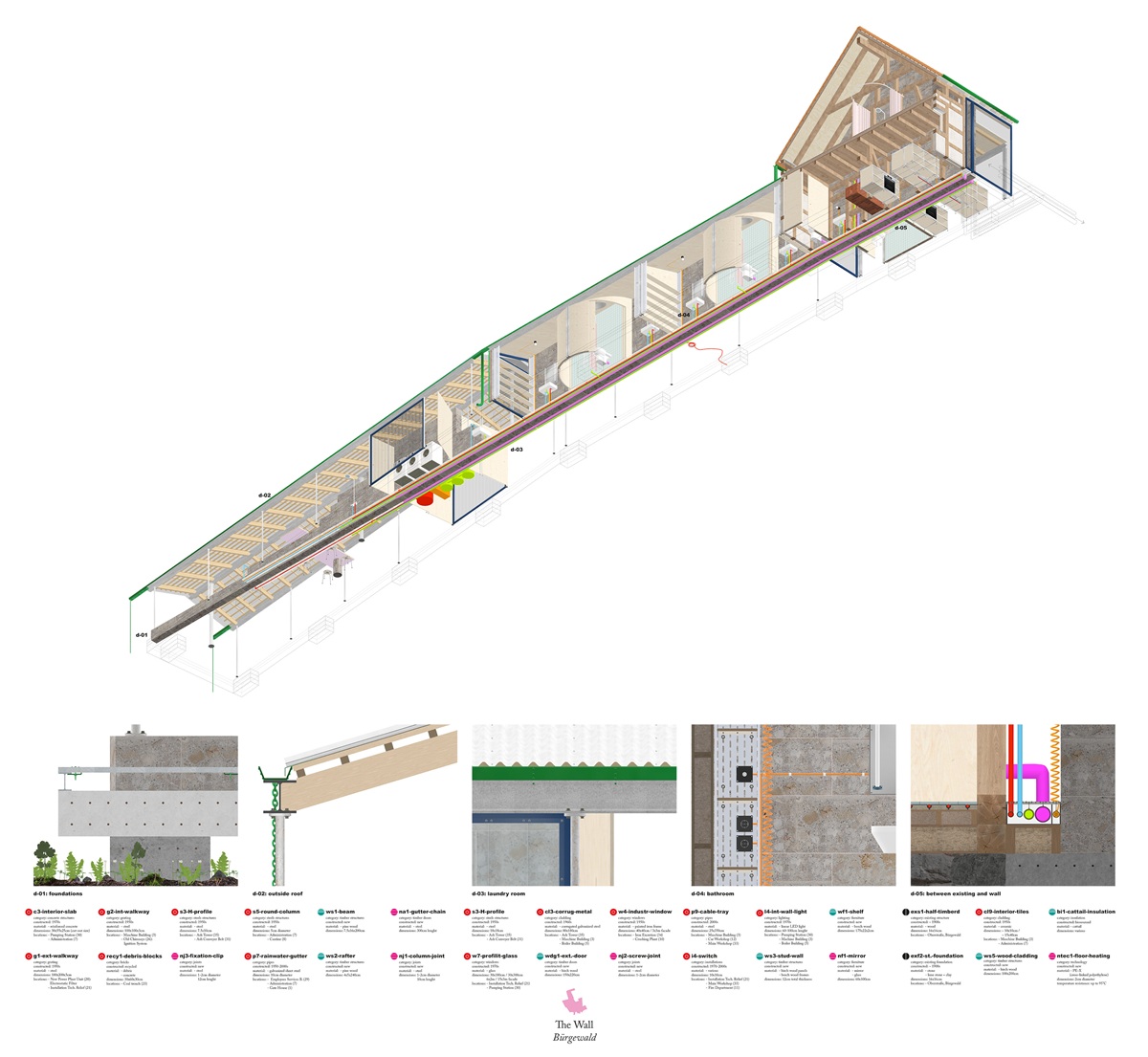 Zurich’s urban densification strategy dominated by systemic demolition and replacement, contributes to an accelerating housing crisis and environmental harm. Building on the Theoretical Statement Erased by Design, which examined the underlying entangled forces of policy, rhetorical obsolescence and others in the imminent demolition of homes along Baslerstrasse, this project calls for a necessary radical shift: halting demolition while revaluing and prolonging the existing. The project unfolds across three levels. First, a catalog archives the settlement’s qualities and material and immaterial values, challenging narratives of obsolescence and devaluation. Second, through a legislative imagination, the project reimagines local planning tools to disrupt the speculative logic of demolition-led densification and promote a more equitable transformation of the city by discouraging developers from demolishing. Third, and based on this altered premise, it proposes spatial intervention strategies to keep and prolong the homes – and its inhabitants, through less extractive, low-carbon approaches.
