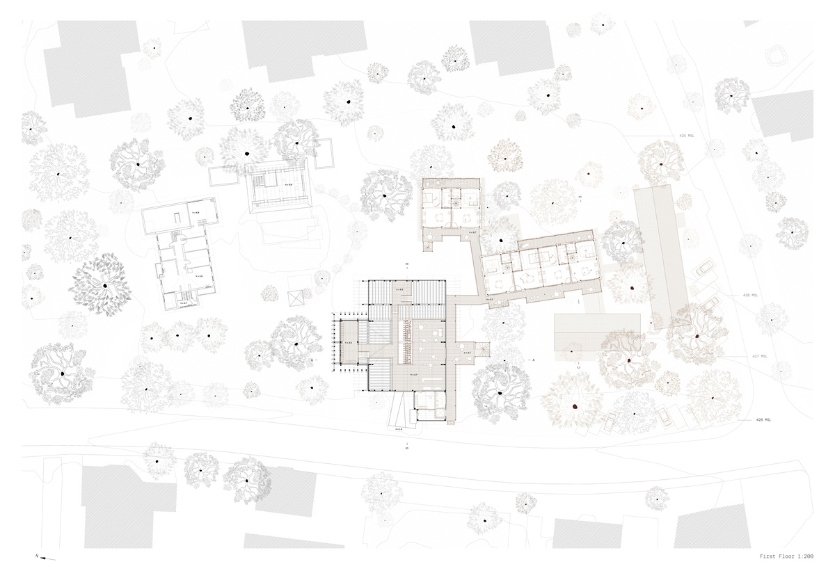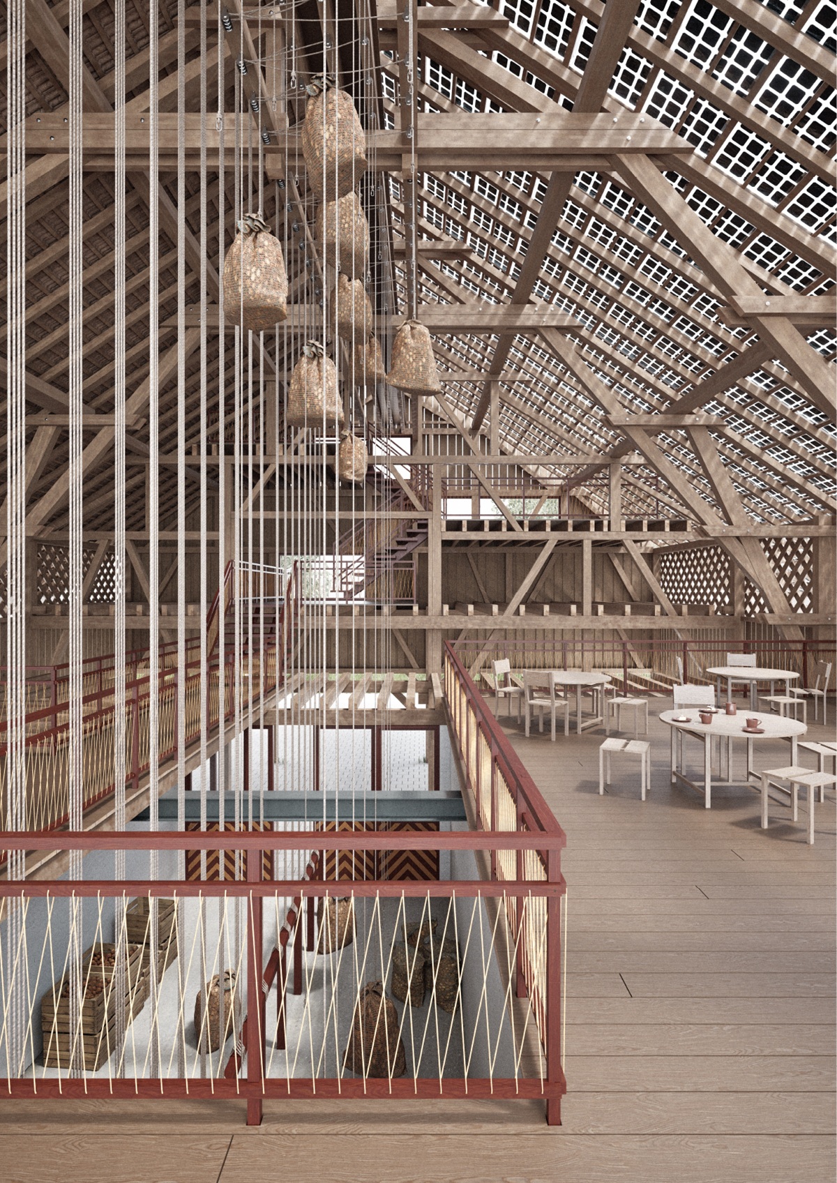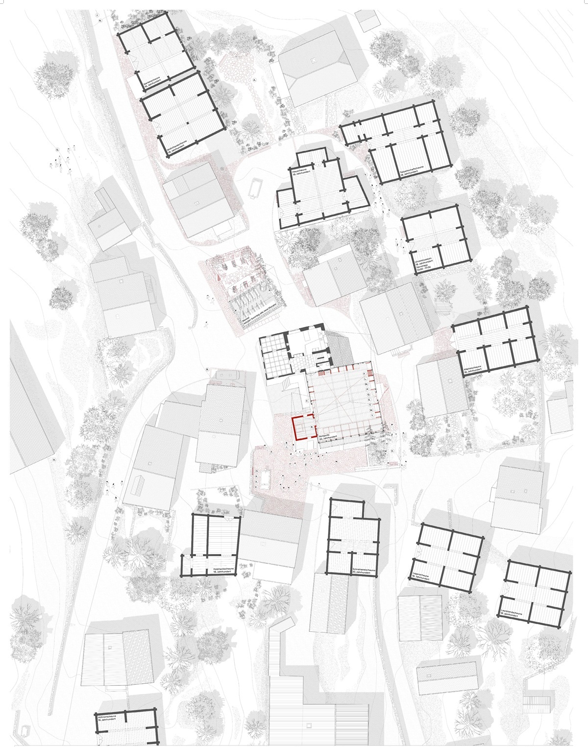 The thesis project “Zur Nuss-Oele” deals with an existing barn structure in Steinhausen. It addresses the issue of disappearing agricultural buildings in the urban context and examines how existing structures can be effectively revitalized by adaptive reuse and contextual integration. The project is based on extensive and carefully conducted research, proposing further development of the farmstead and restoration of the historic walnut oil mill, which serves as the centerpiece of the complex and is situated within the existing barn. The careful detailing of the structures enhances the project's credibility and the integration of old and new in dialogue reflects a deep understanding of architectural heritage and adaptive reuse. The design carefully balances preservation and innovation, with meticulous attention to materiality, detail, and contextual harmony. By transforming the historic walnut oil mill into a vibrant communal space under a sustainably updated roof, the project fosters a meaningful dialogue between old and new, nature and architecture.