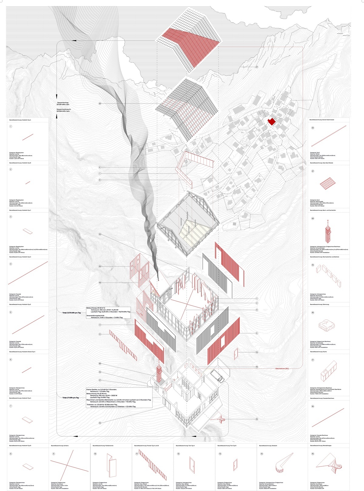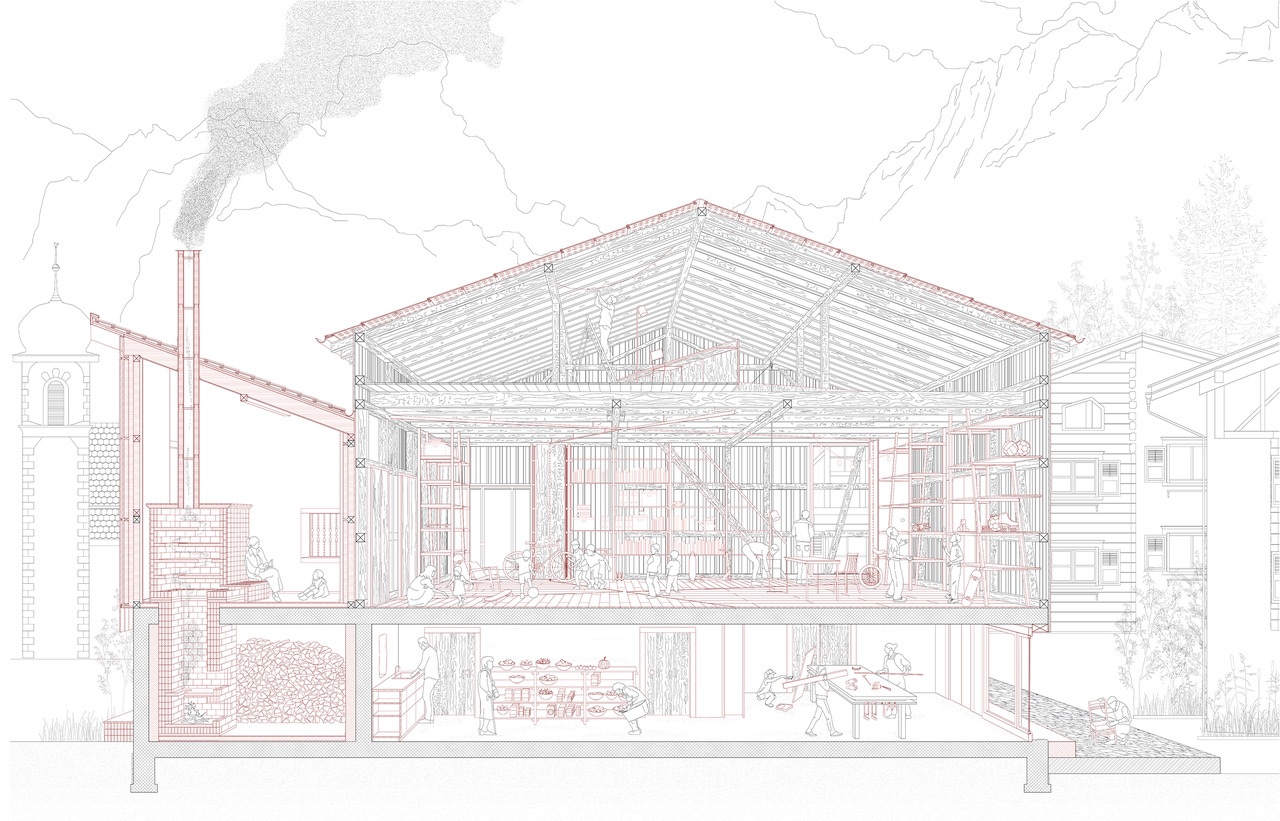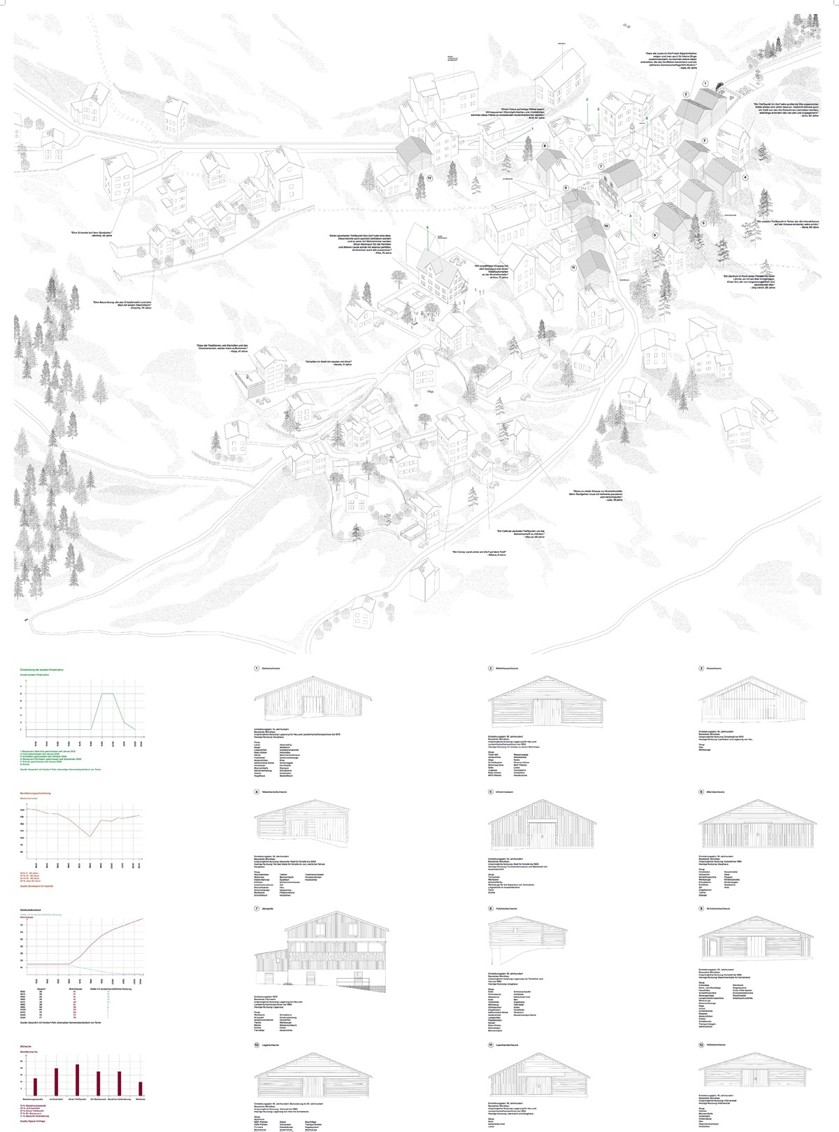 Alternde Bevölkerung, zunehmende Anonymität durch fehlende soziale Infrastruktur und ein hoher Anteil an Zweitwohnungen: Dies führt zu einem Verlust an sozialem Zusammenhalt. Ein Beispiel für ein solches Dorf ist Tartar im Kanton Graubünden. Wir haben Bewohner besucht und zu ihre Wünschen, Sorgen und Hoffnungen befragt. Trotz aller Unterschiede verband sie ein Wunsch: mehr Gemeinschaft. Im Zentrum unseres Projekts steht ein leerstehender Stall, den wir Akropolis nennen. Es handelt sich um einen Heustall aus den siebziger Jahren mit offener Rahmenstruktur – der geräumigste und flexibelste Stall in Tartar. Unser Projekt versteht Gemeinschaft nicht nur als Ziel, sondern als architektonische Haltung. Die Akropolis wird zu einem sozialen Treffpunkt und einer lokalen Energiequelle – ein Beispiel dafür, wie sozialer Zusammenhalt gefördert, Ressourcen geschont und kulturelles Erbe weiterentwickelt werden kann. Das Projekt zeigt das transformative Potenzial von Tartars Ställen und Straßen für eine zukunftsfähige, gemeinschaftlich getragene Dorfkultur.