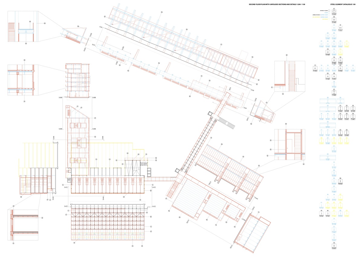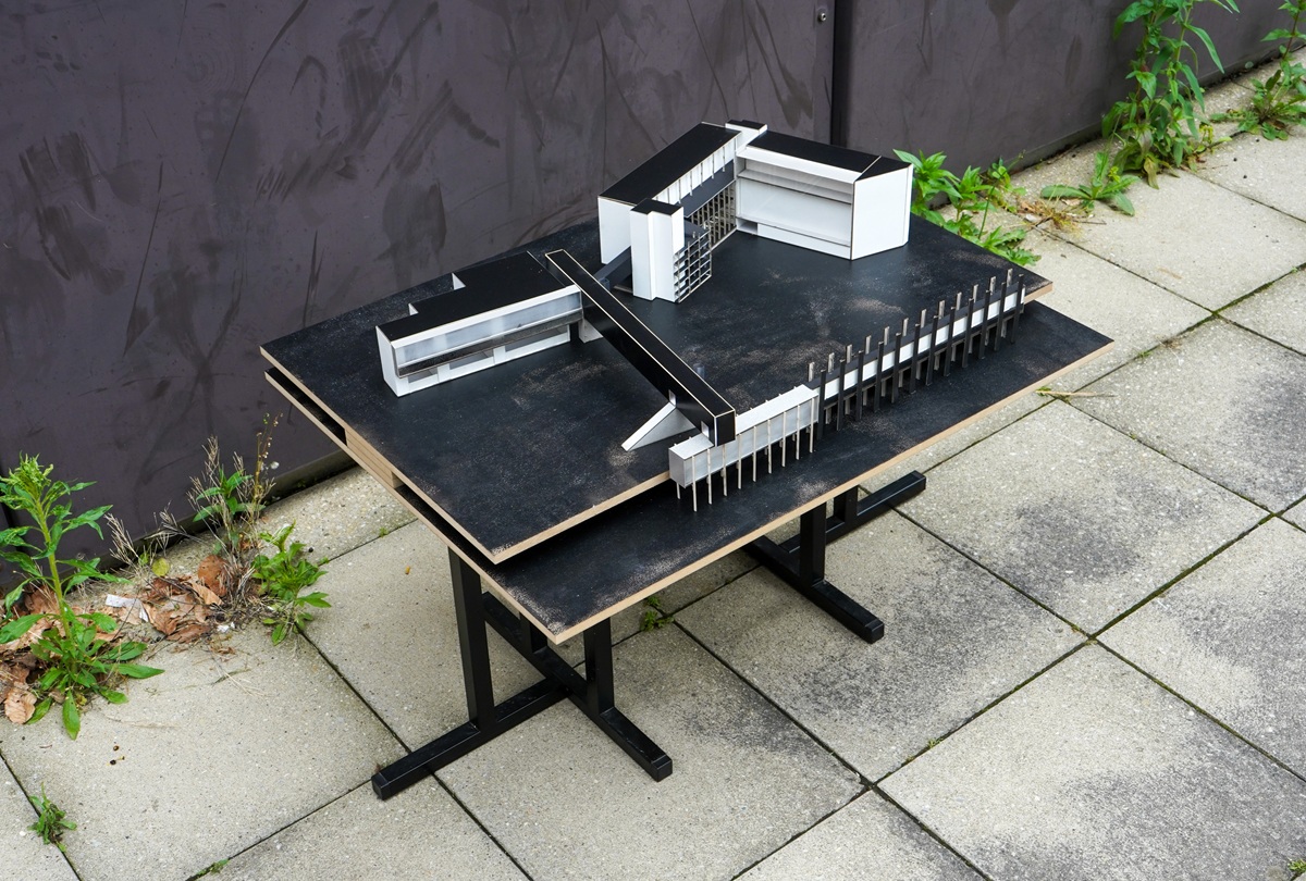 The impact of the current poly-crisis on the notion of European identity is examined and addressed architecturally in the context of the Baselstrasse neighbourhood in Luzern, which is considered the backstage of the city, a place for the outcast. Public places, infrastructure, and access to the riverfront are almost non-existent. In the first phase, the Parkhaus remains a parking garage, while only the structural elements of the uppermost floor are dismantled and used to build the river bath. In a second phase, again just the top floor elements are used to build the community building. In the last phase, like tearing up a carcass, half of the building remains standing and with the elements of the other half, an L-shaped housing volume is developed. The three buildings and the connecting bridge are not necessarily to be read as one. Nevertheless, their volumes become part of an urban composition which has characteristics of a unity.