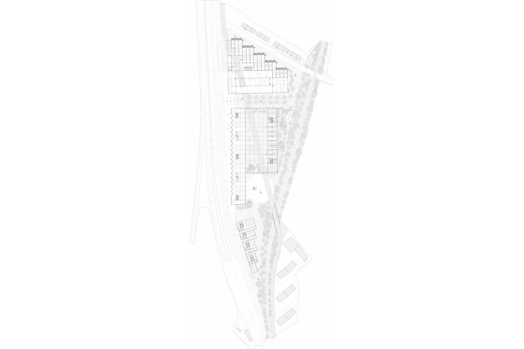 Das Projekt umfasst verschiedene Massstäbe und Aspekte: von städtebaulich, programmatisch und konstruktiv bis hin zu Detaillösungen. Die Situation ist umfassend analysiert, die Ebenen sorgfältig durchdacht und dargestellt. Die Architektursprache der Interventionen baut auf dem nüchtern-funktionalen Architekturvokabular des Bestands auf.