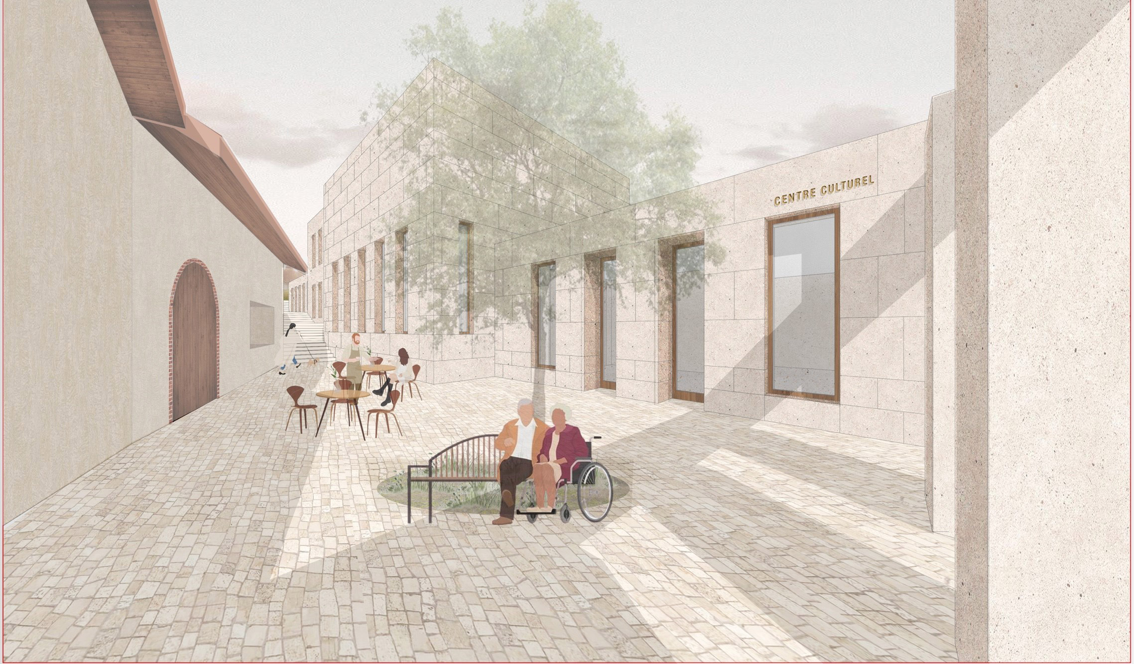 Ce projet s’articule sur plusieurs problématiques autour des notions de valorisation et de préservation patrimoniale. Programmatiquement, il s’agit de proposer des équipements sociaux-culturels qui permettent de garder une activité annuelle afin de lutter contre le phénomène de la « désertification » sociale observée sur le territoire rural français. Le travail propose donc une permanence scolaire et médicale ainsi qu’un centre culturel. Un programme à vocation touristique doit ancrer une activité qui ne serait pas saisonnière comme c’est le cas des régions viticoles. Une analyse extrêmement soignée de la morphologie du village a permis d’identifier des sites d’intervention qui permettent à ces nouveaux programmes de se fondre pour ainsi dire dans la structure villageoise tout en mettant en évidence les qualités intrinsèques des lieux désignés, les perspectives visuelles, les espaces signifiants, les matérialités. Finalement ce choix de matériau local assure une vertu environnementale exceptionnelle en termes d’usages, de mise en oeuvre, de grammaire architecturale et spatiale.